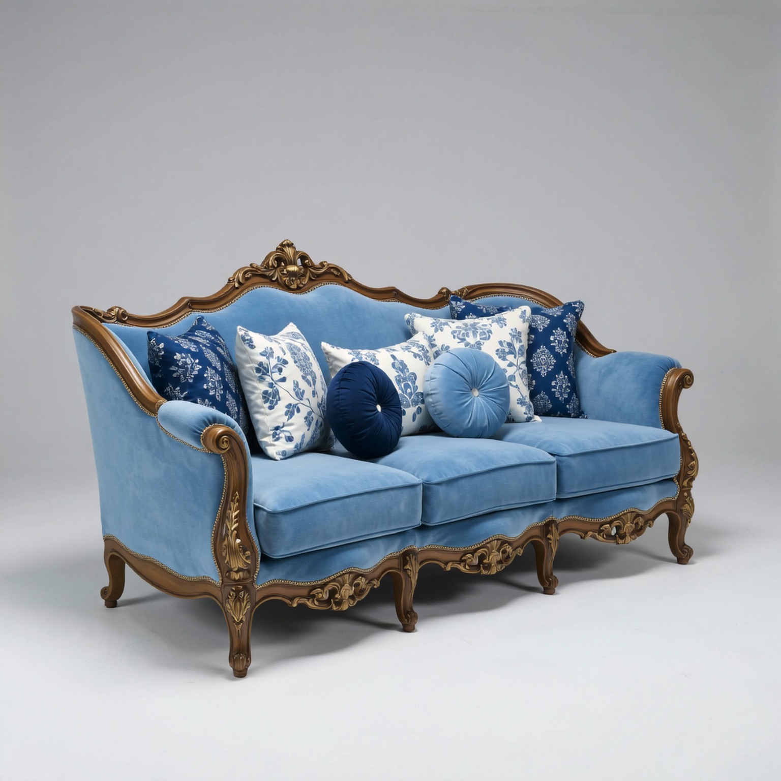 Transform your living space with this exquisite 3-Seater Hand-Carved Teak Wood Sofa, meticulously designed to showcase refined craftsmanship and royal elegance. The rich natural teak wood frame is enhanced with metallic gold accents, creating a perfect blend of tradition and luxury. Its plush seating provides superior comfort, while the ornate hand-carved details make it a stunning centerpiece for living rooms, lounges, or statement décor spaces. A timeless masterpiece that reflects both artistry and opulence.