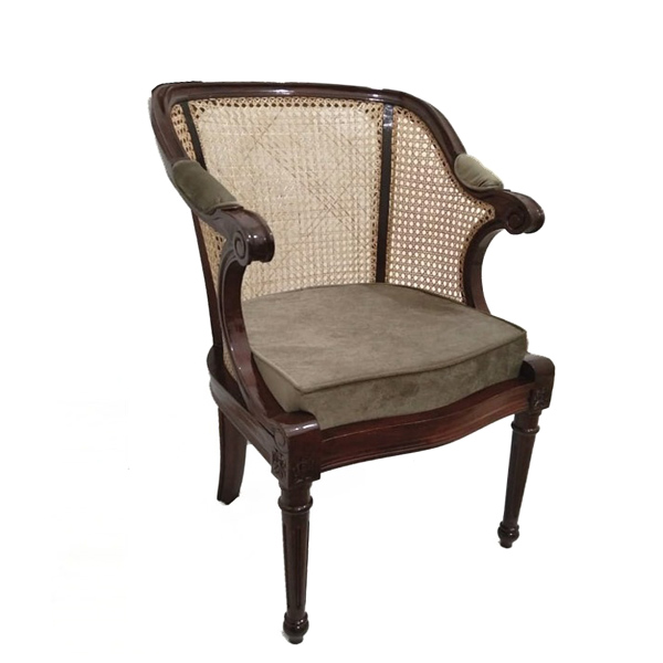 The Cane Bergère Armchair beautifully blends classic European elegance with natural craftsmanship. Featuring a solid wooden frame and handwoven cane panels, it offers both comfort and sophistication to any space. The gently curved arms and plush seating ensure a relaxed sitting experience, while the intricate cane work adds an artisanal charm. Perfect for living rooms, reading corners, or stylish lounges, this handcrafted armchair brings warmth, texture, and refined character to your décor.