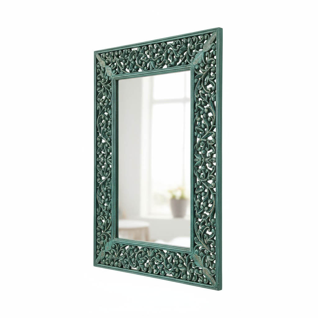 The rich green color combined with a natural polish finish creates a perfect balance between artistic vibrance and rustic warmth. Whether used as a mirror frame, photo frame, or wall décor, this carved frame adds character and sophistication to your space.