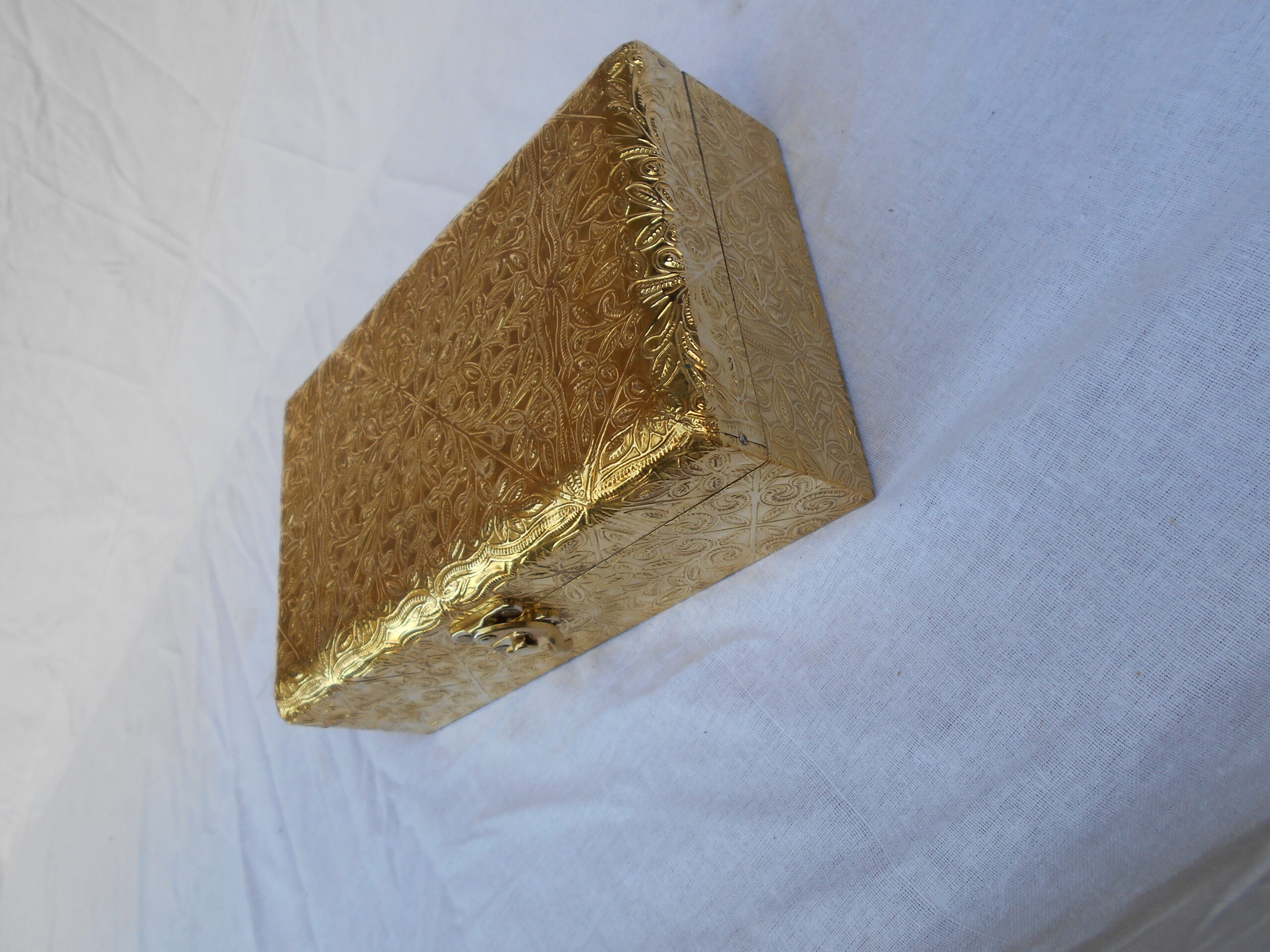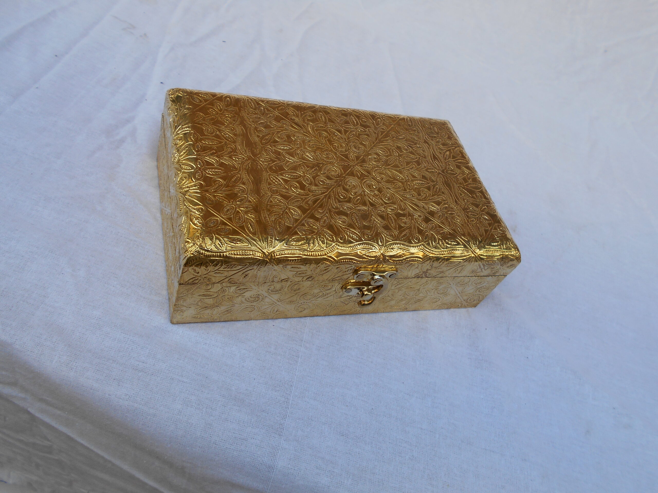 Beautifully handcrafted golden wooden jewelry box designed to store bangles, watches, and accessories with elegance and ease.