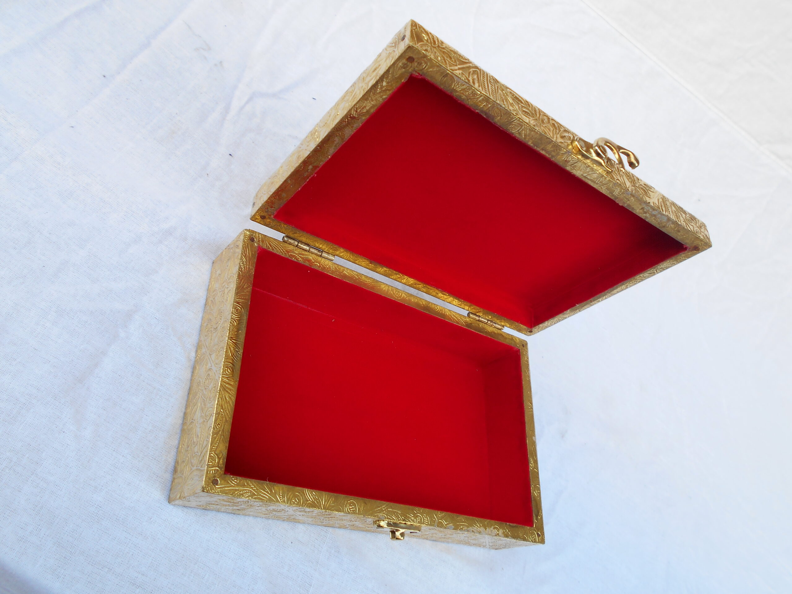 Add a touch of sophistication to your dressing space with this Handmade Golden Wooden Jewelry Box. Expertly crafted by skilled artisans, this organizer combines traditional craftsmanship with a luxurious golden finish. Perfect for storing bangles, watches, earrings, and other precious accessories, it ensures your treasures stay neatly organized and protected. The intricate detailing and polished wooden texture make it not just a storage box but also a stunning decorative piece for your home décor.