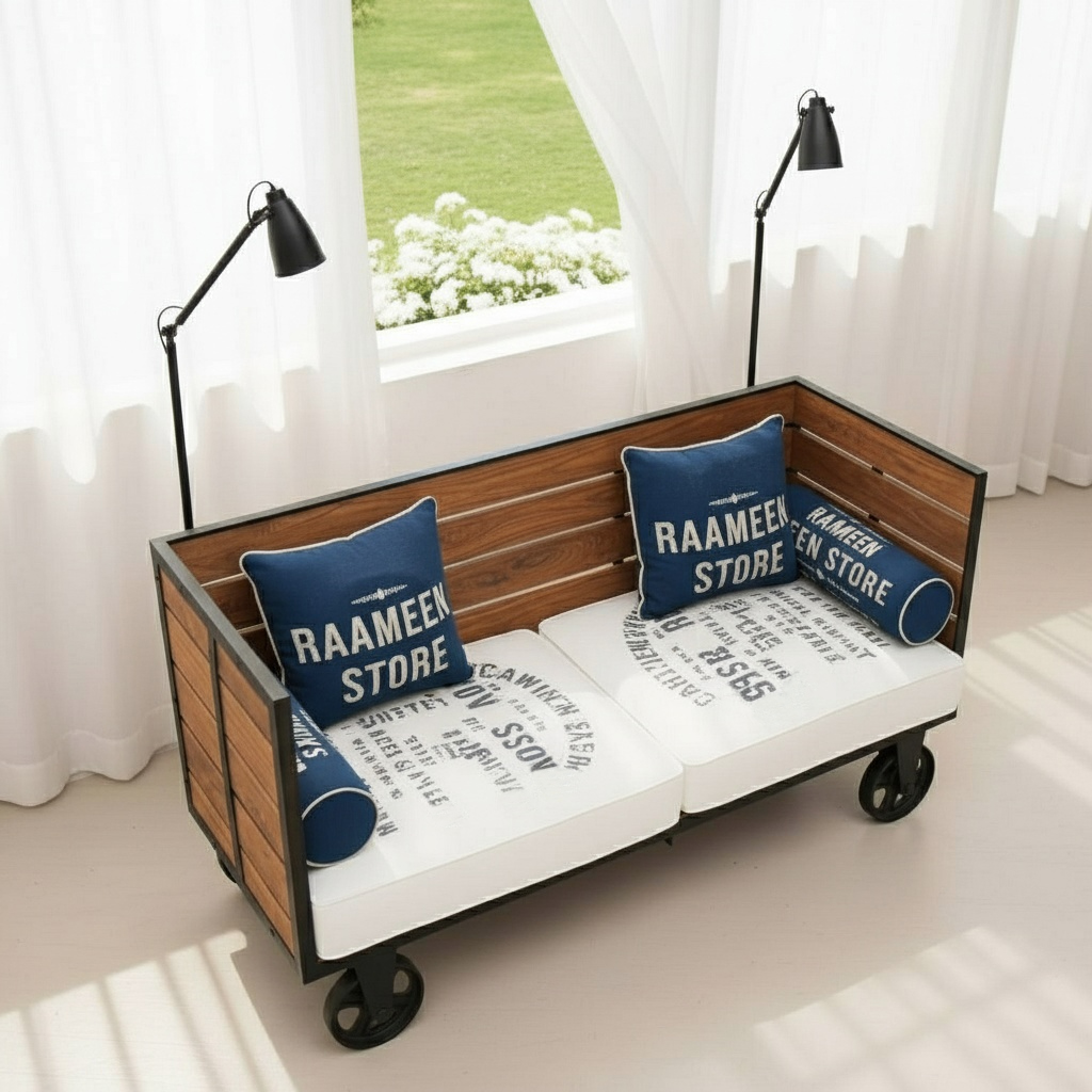 Though industrial in design, this sofa is crafted with attention to comfort — proving that style never has to compromise ease. The powder coat colour and wood stain can be fully customized to match your interior theme. For added comfort, an optional upholstered backrest can also be provided upon request, making it versatile for both homes and commercial spaces.
